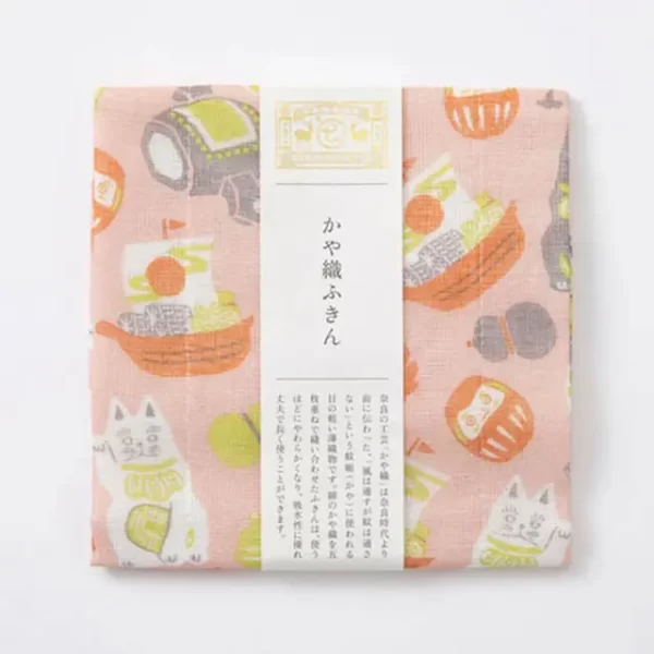 奈良の工芸「かや織」の生地を5枚重ねで縫い合わせたふきんは使うほどにやわらかくなり、吸水性に優れ、水を含んでもべちゃべちゃになりません。