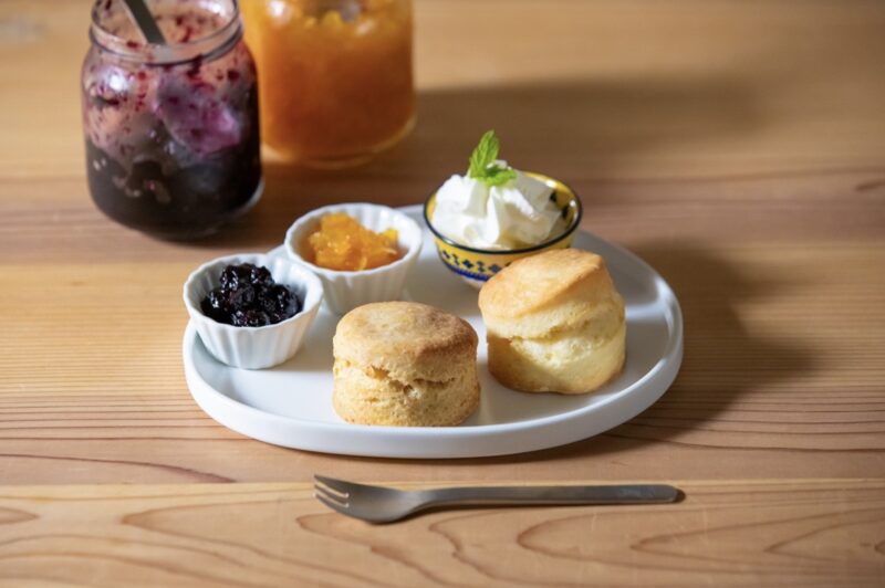 スコーンはたっぷりバターで香り豊かなプレーンスコーンと、